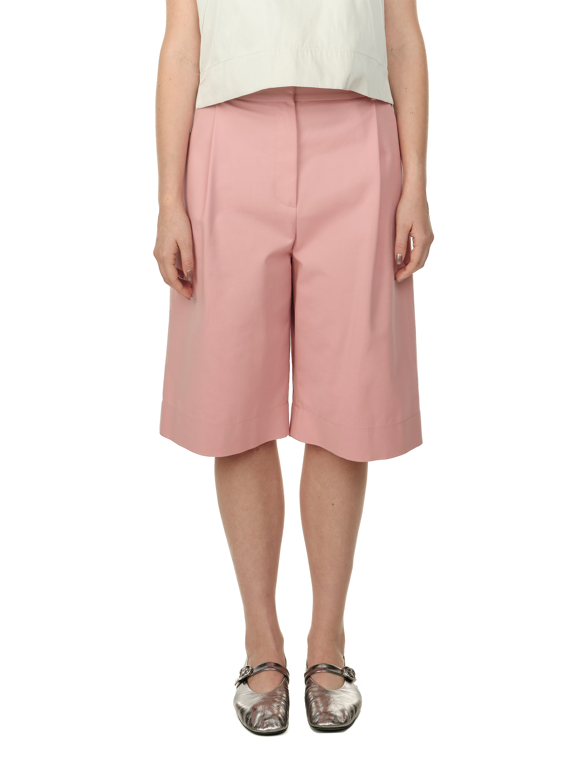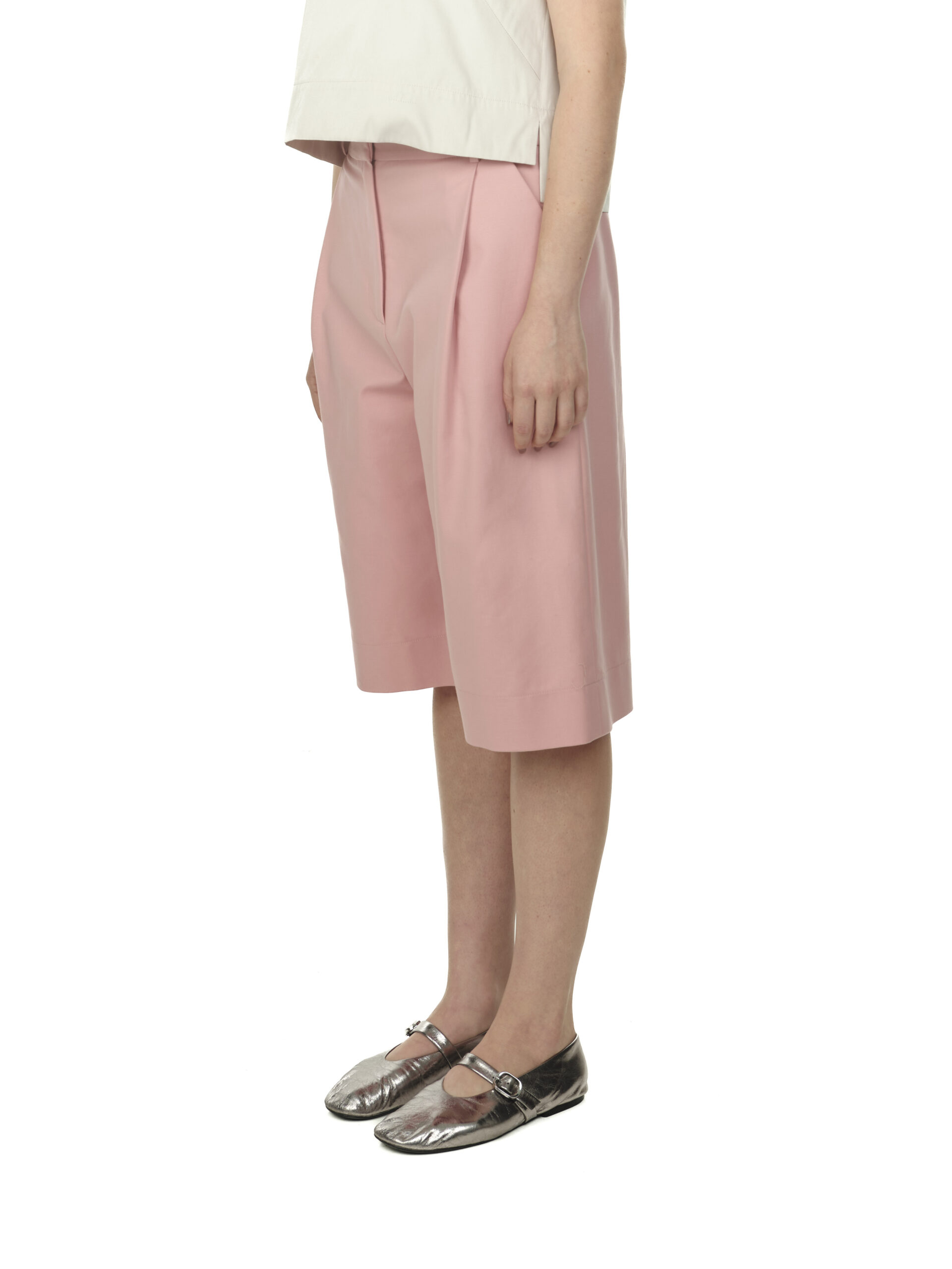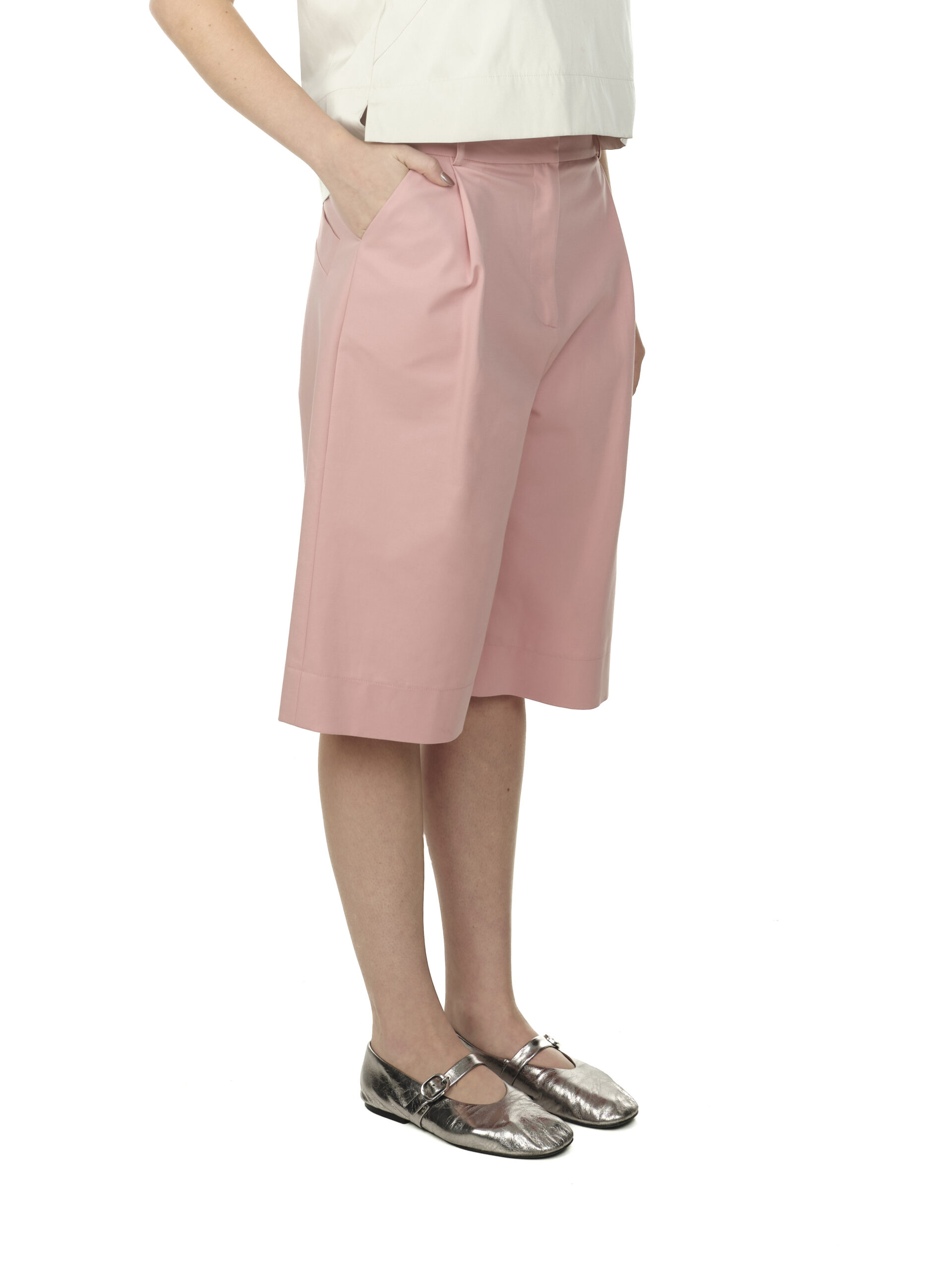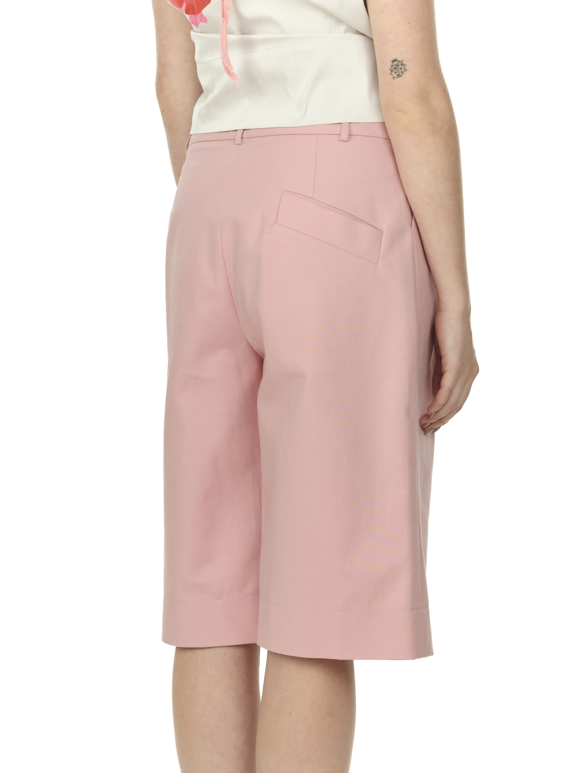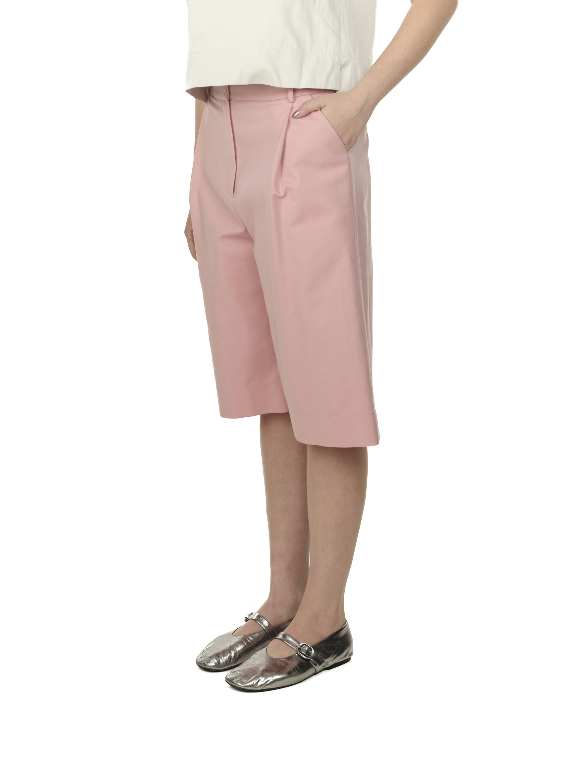 Pantaloni trei sferturi cu pense și buzunare laterale. Închidere cu fermoar și cu cârlig la betelie. Un buzunar oblic functional cu refilet lat la spate.
